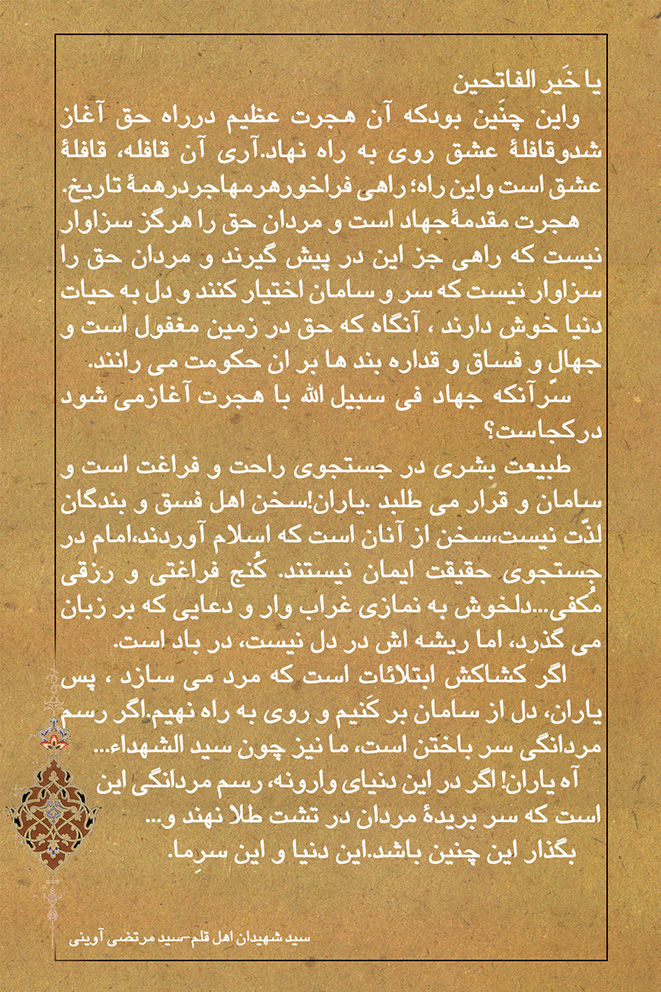 و «شهادت رازی است که تنها با ریخته شدن خون فاش می شود»